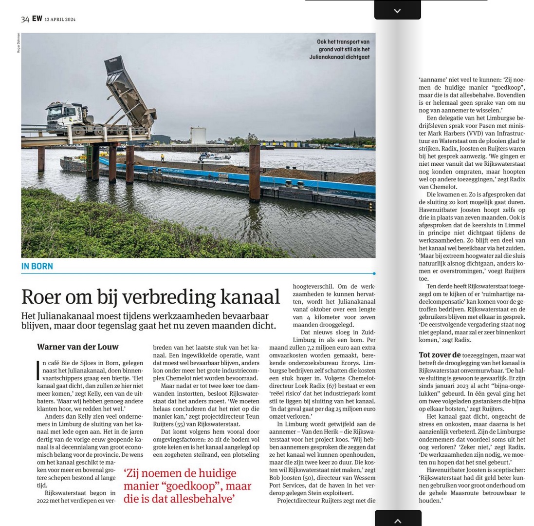 - In Born: roer om bij verbreding kanaal, EW Magazine, 13 april 2024.