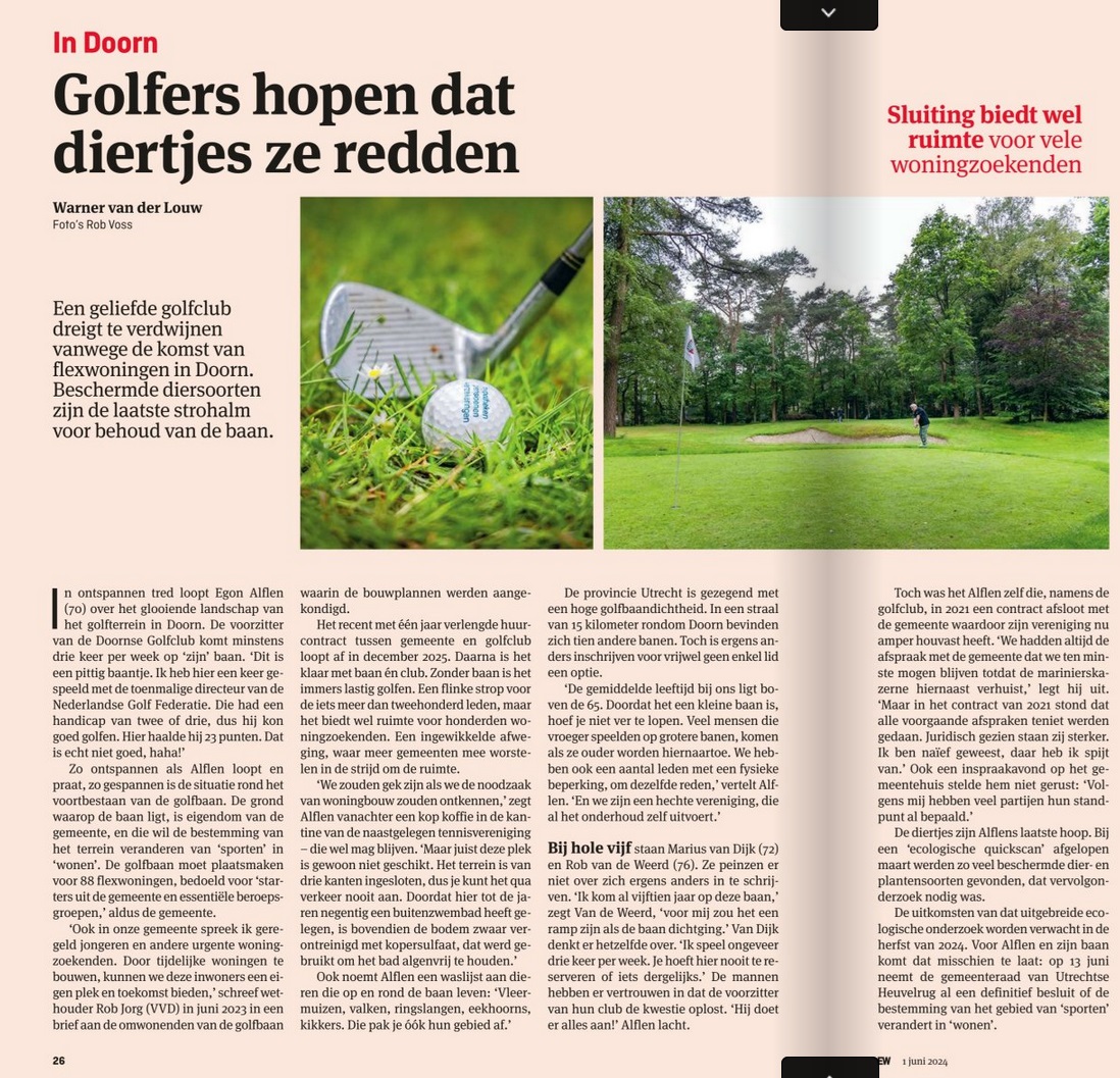 - In Doorn: golfers hopen dat diertjes ze redden, EW Magazine, 1 juni 2024.