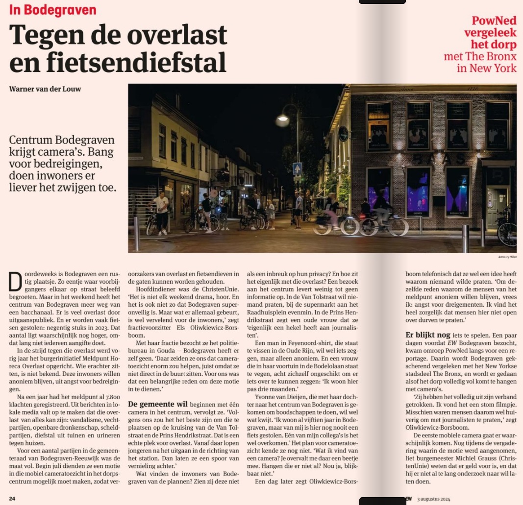 - In Bodegraven: tegen de overlast en fietsendiefstal, EW Magazine, 3 augustus 2024.