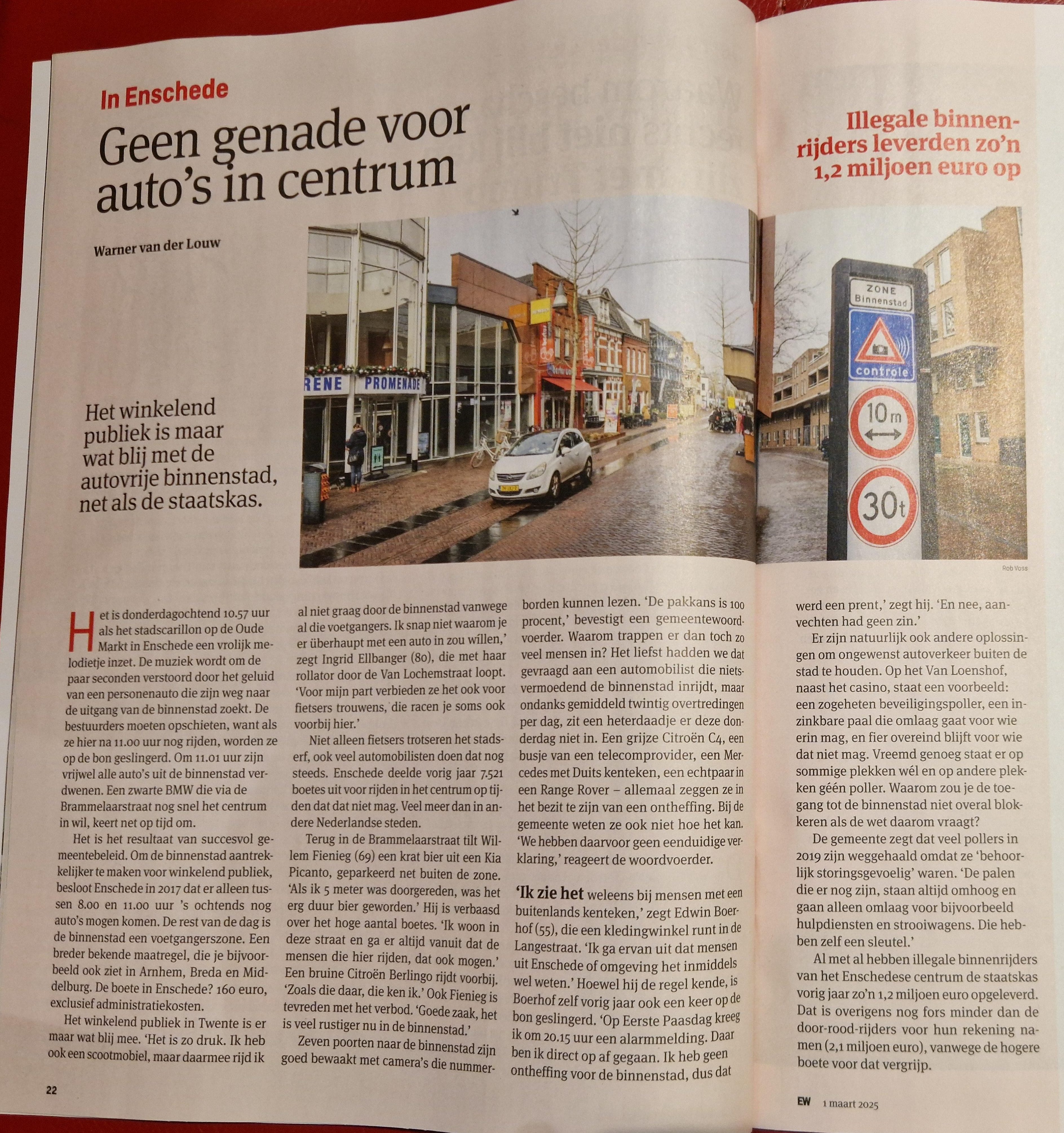 - In Enschede: geen genade voor auto’s in centrum, EW Magazine, 1 maart 2025.