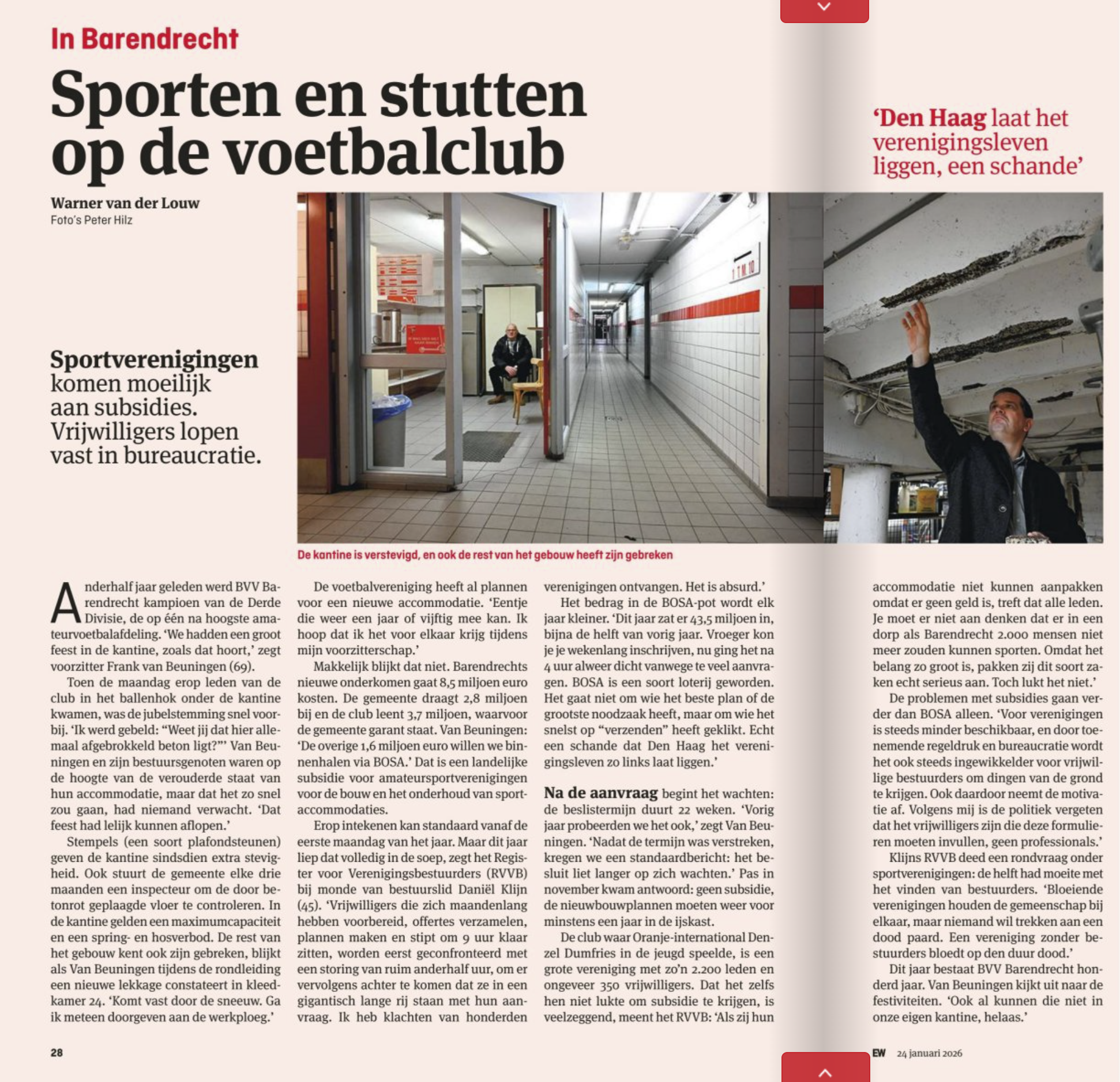 - In Barendrecht: sporten en stutten op de voetbalclub, EW Magazine, 24 januari 2026.
